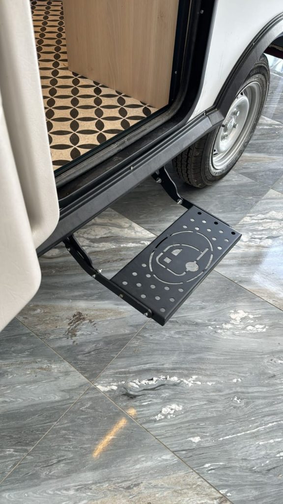 Karavan giriş basamağımız, karavanınıza giriş ve çıkışlarda güvenlik ve rahatlık sağlamak üzere özel olarak tasarlanmıştır. Dayanıklı metal yapısı ve kaymaz yüzeyi sayesinde her türlü hava koşulunda güvenli bir kullanım sunar.